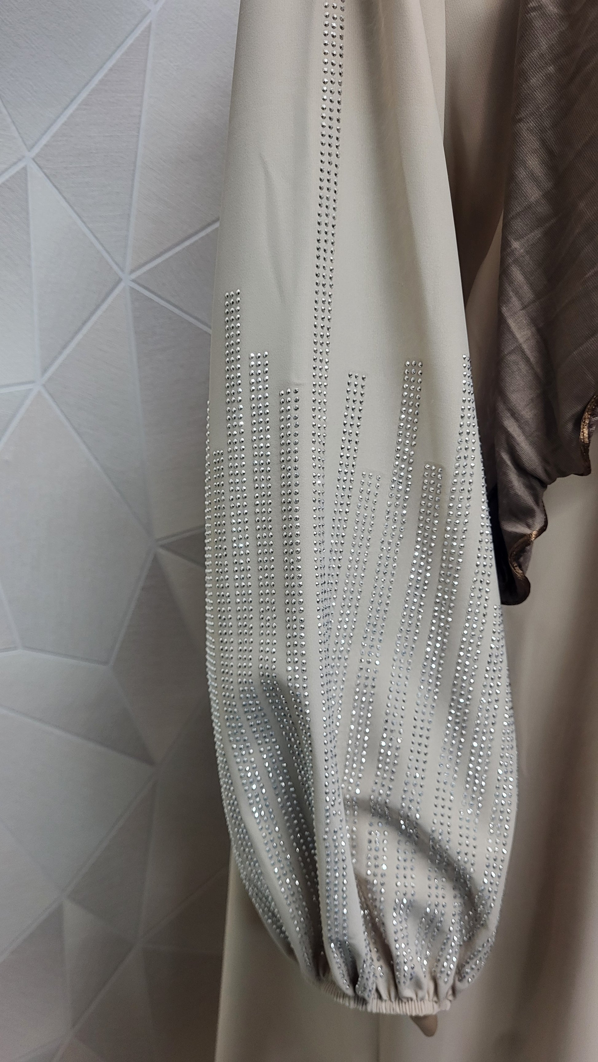 Abaya de tela crep con brillantes en las mangas.