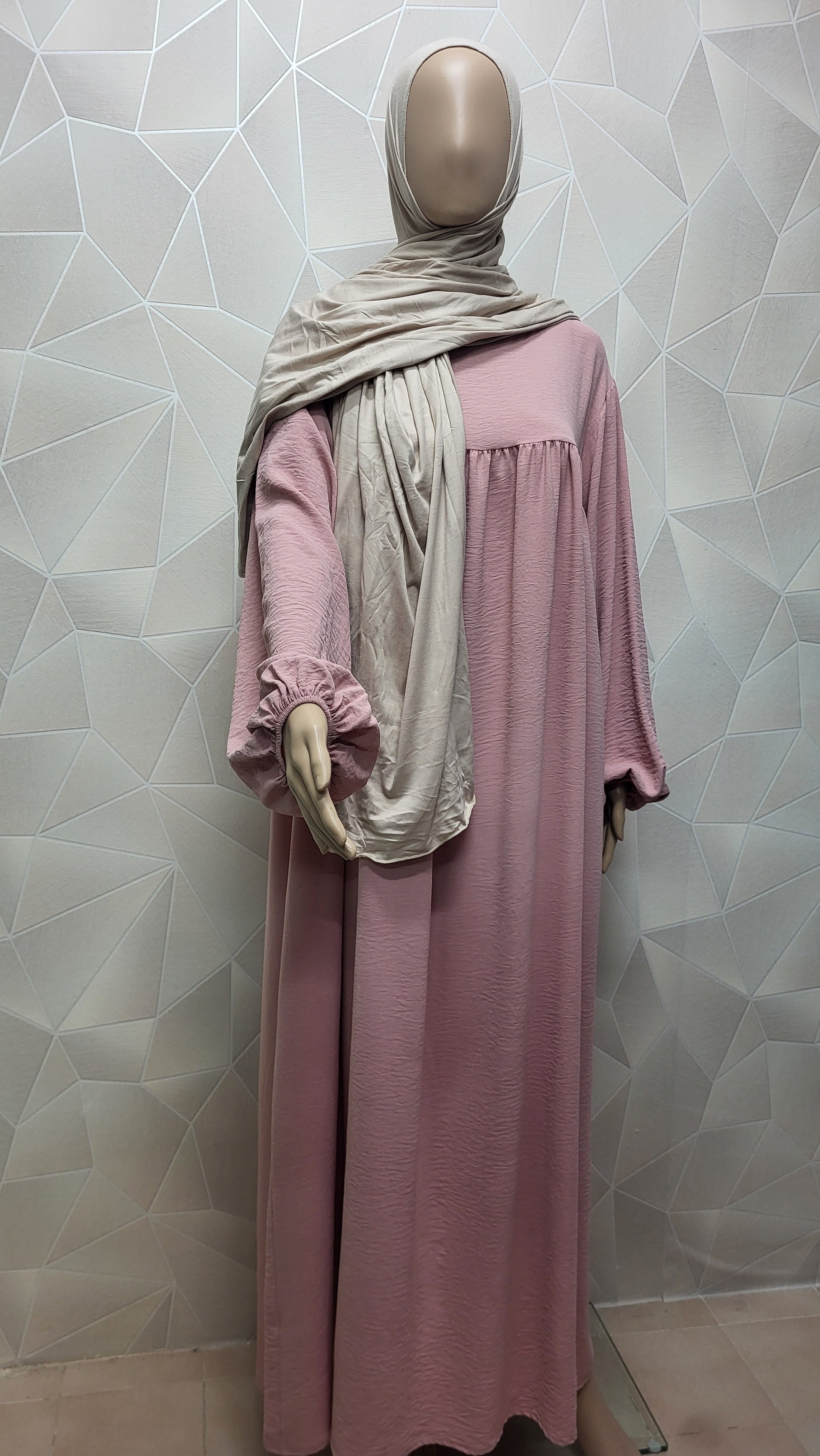 Abaya básica tela jazz, tiene las mangas en forma de globo.